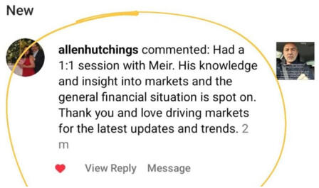 ⭐️⭐️⭐️⭐️⭐️”Meir you are a fantastic mentor. I’m so glad I have your guidance during my trading journey”-Melody