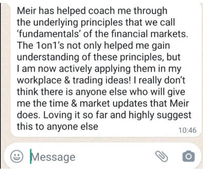 "Meir will always be my mentor. I started 6 months ago and am definitely trending up. I recommend him to anyone already in finance or looking to jump in."-Hillel